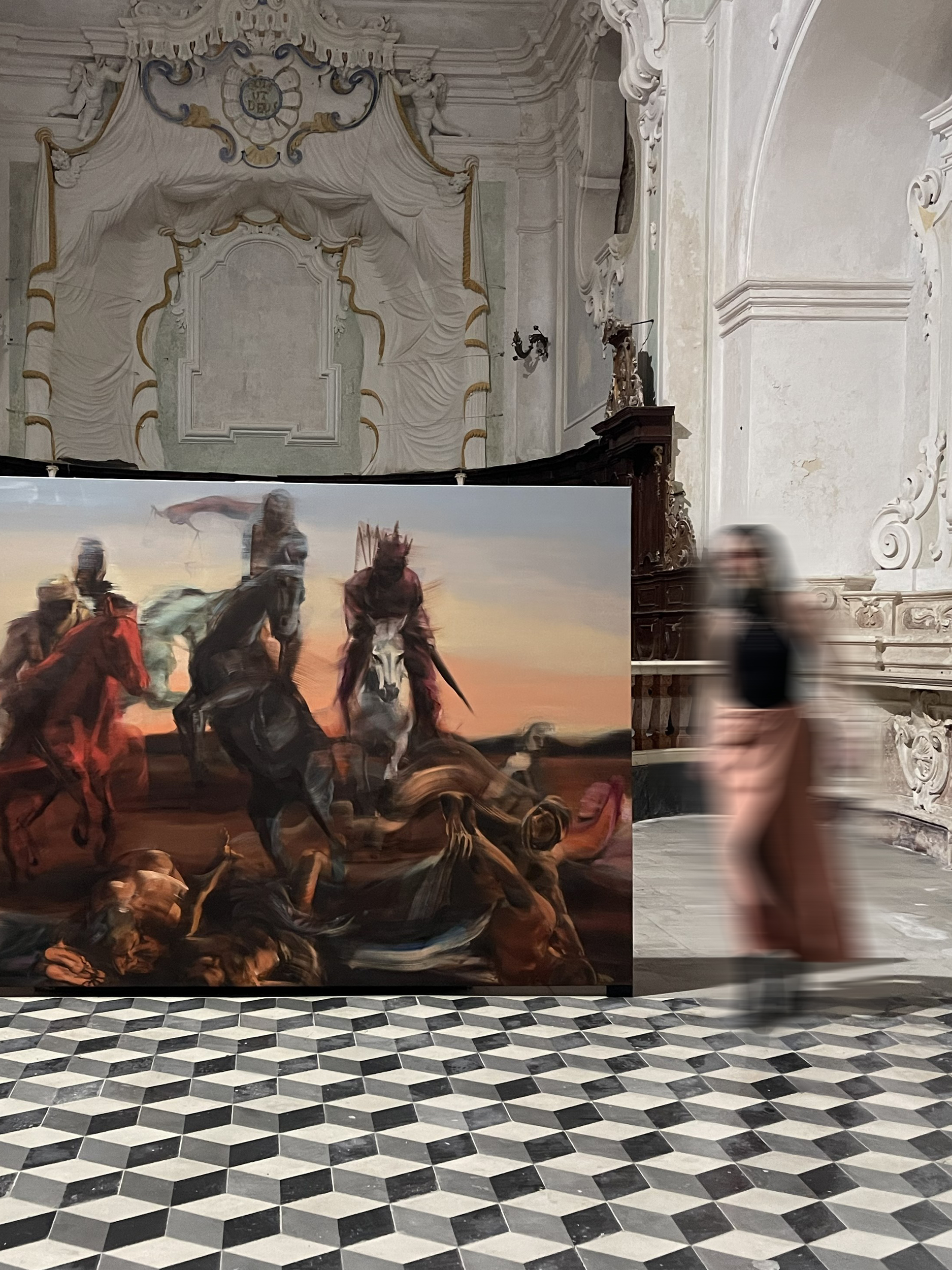 The Four Horsemen of the Apocalypse forms part of the inaugural works of Friedrich’s ongoing series Sacro. Conceived as an in situ installation within a sacred architectural site, the exhibition initiates Friedrich’s sustained exploration of the sacred—not through a formalized theological framework, but as an inquiry into recurring cultural and existential conditions. Friedrich’s practice unfolds as a long-term investigation of the human condition. In Sacro, she bridges past and present, tracing centuries of Western Mediterranean history through religious iconography while engaging with contemporary realities. Rather than reproducing devotion, the series interrogates it, asking: what is sacred today? To which forces do we offer reverence, or surrender in fear?